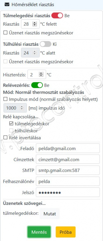• Email alert e.g. a min. / max. if the limit values ??are exceeded