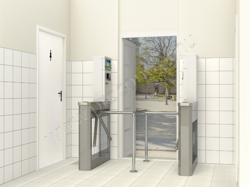 PayGate 3E-1400 Fizetőautomatával felszerelt PG3 forgóvillás WC beléptető ejtőkarral,nyugtát nyomtatKurzbeschreibungDas PayGate 3 ist ein intelligentes Drehkreuz. Es ist eine zuverlässige Zugangskontrolle für den bezahlten Eintritt in die öffentliche Toiletten.